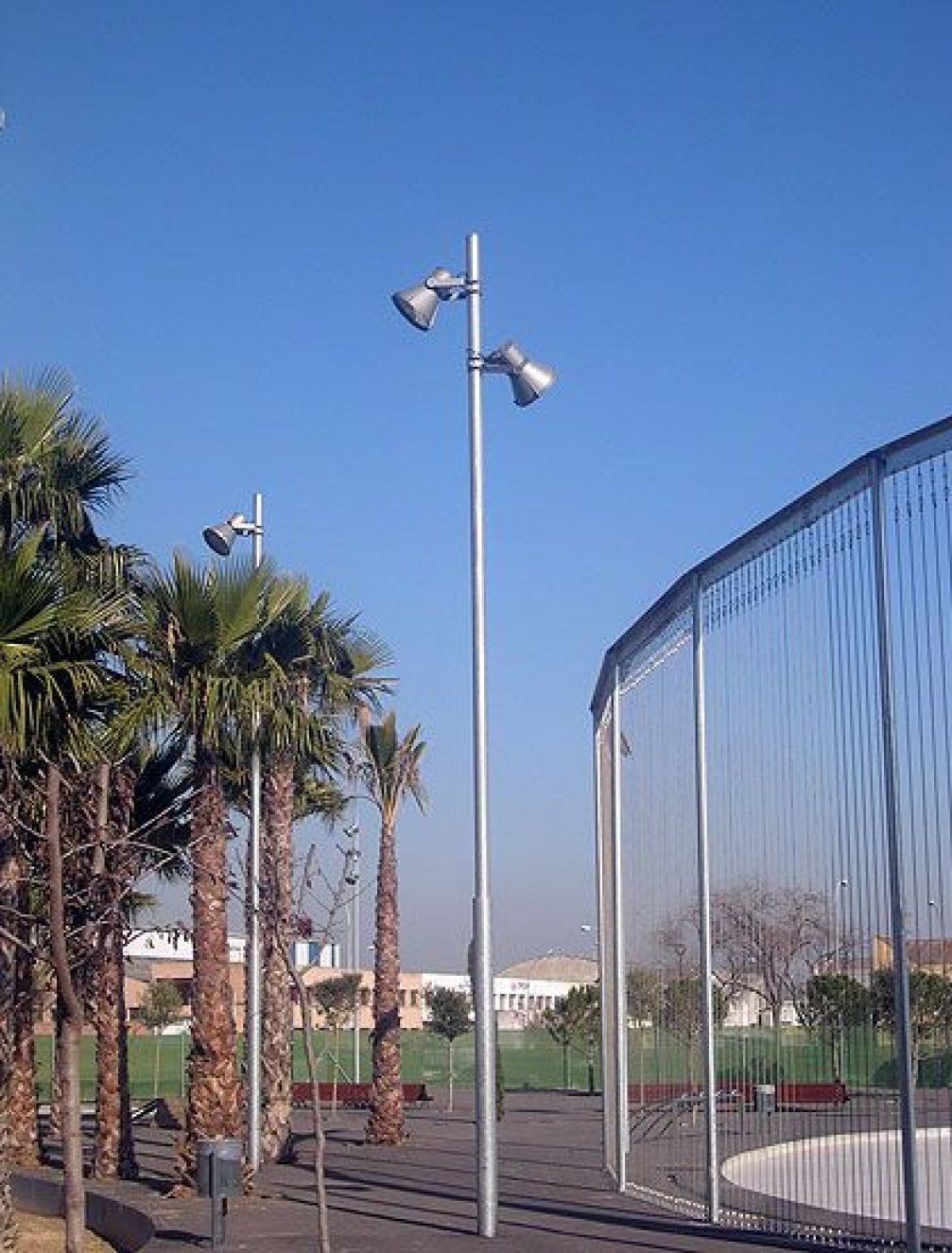• Mât retreint acier galvanisé thermolaqué, avec system de fixation de projecteurs  par brides.