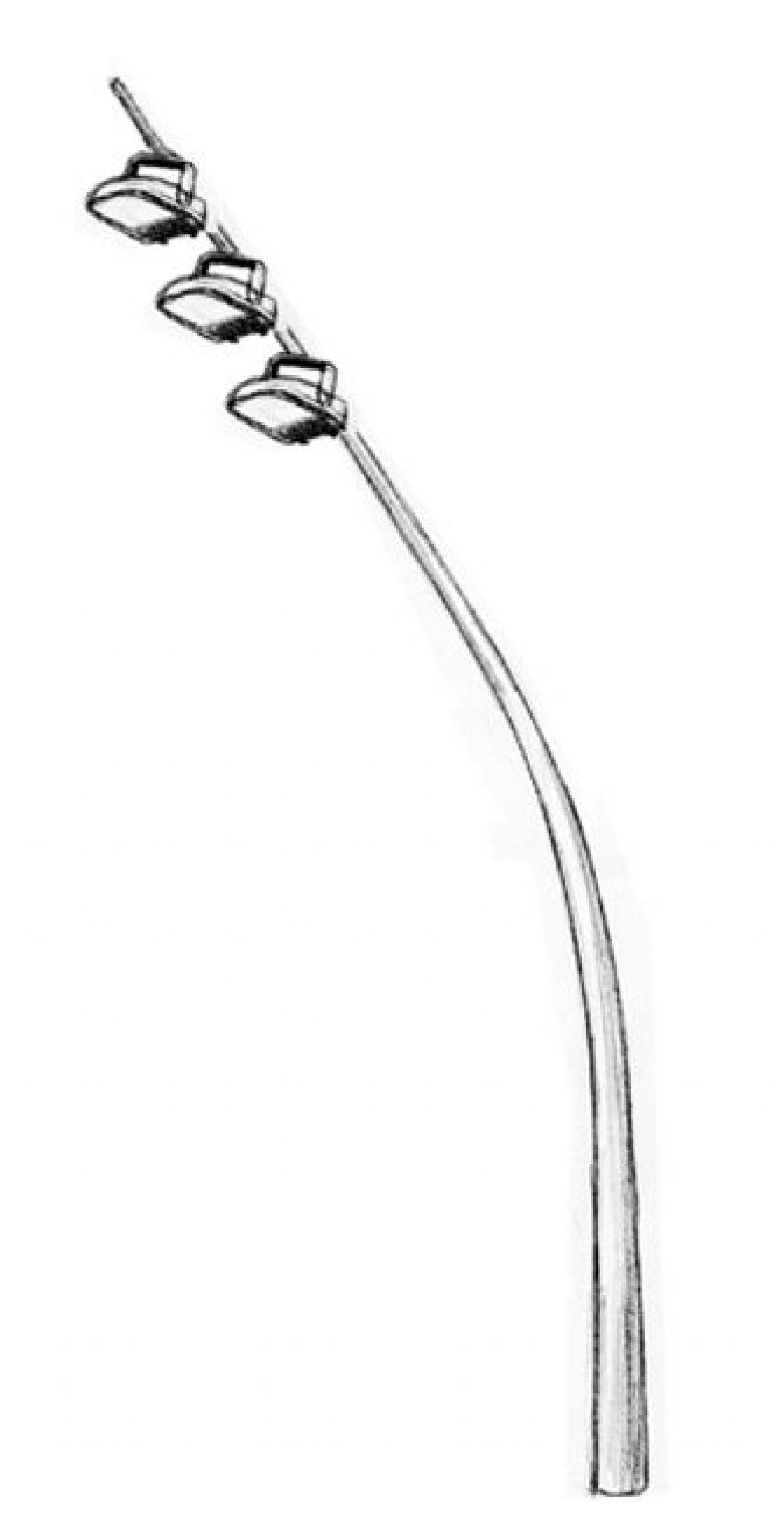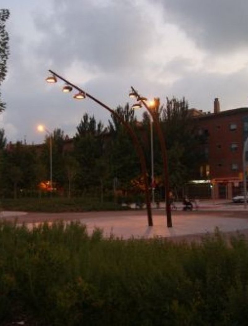 • Mât cylindro-conique cintre, en acier corten. Designé pour adapter plusieurs  projecteurs. Differentes configurations possibles.